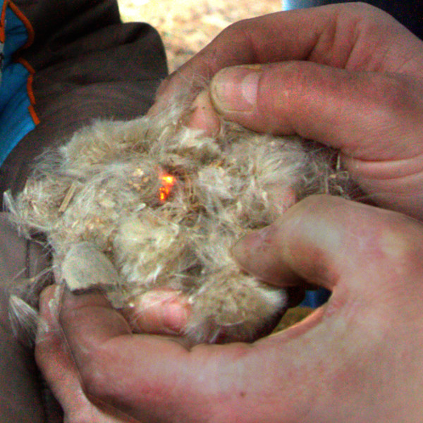 Hier können verschiedene Feuermachtechniken ausprobiert werden: Schlag-, Bohr- und Reibetechniken, mittelalterliche und neuzeitliche Methoden wie das Glimmen mit Lupe oder Hohlspiegel, Pfadfindertechniken mit dem Feuerstahl und natürlich mit dem guten alten Streichholz.