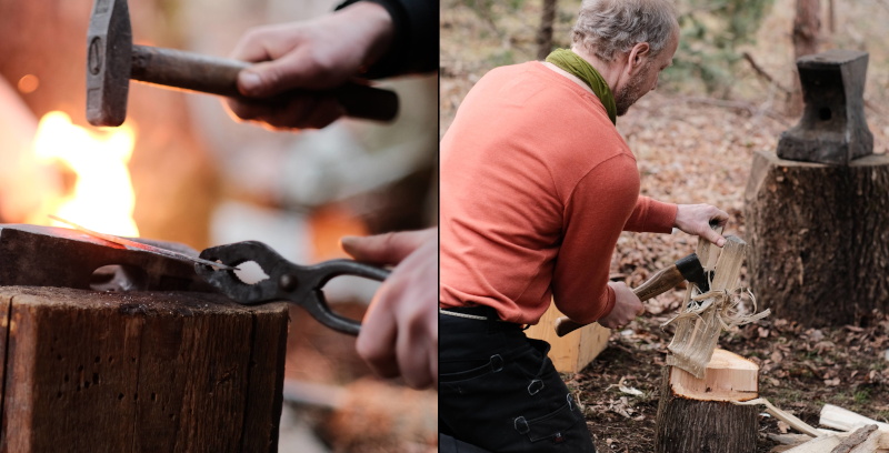 Feuer-Projekte: Schmieden, Glasperlen drehen am Lehmofen, Backen im Lehm- oder Dosenofen, Pizzaofen aus Lehm bauen, Outdoorküche mit dem Holzgaskocher, Freibrand von Tonplastiken, Birkenpech herstellen, Bronze gießen, Brennen von Farbpigmenten, Einrichtung spezieller Feuerstellen, Feuerhüten, Räuchern und weitere.