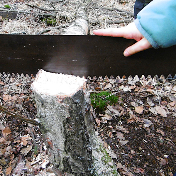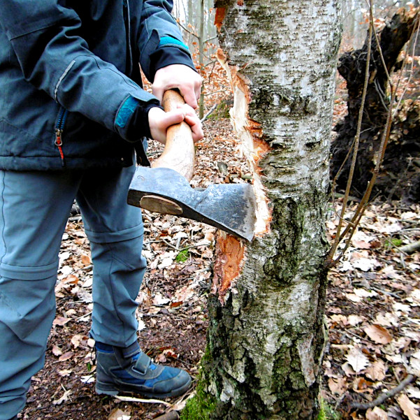 Wir ziehen wie die alten Holzfäller mit Axt und Säge in den Wald und fällen einen Baum. Dann sägen wir ihn in Stücke, spalten das Holz und schnitzen coole Sachen daraus, z.B. Löffel, Buttermesser, Schwirrhölzer und vieles mehr.