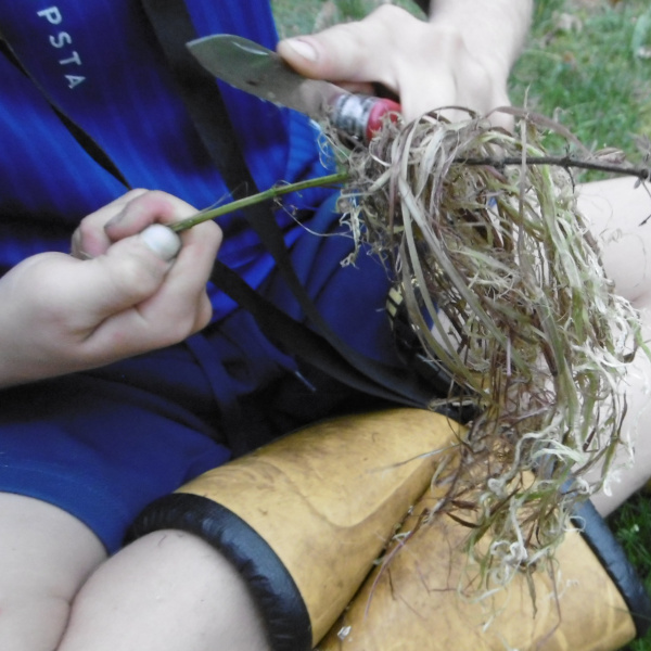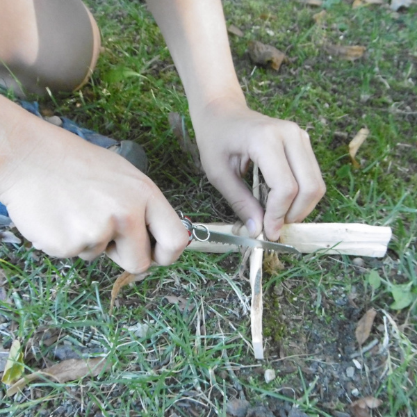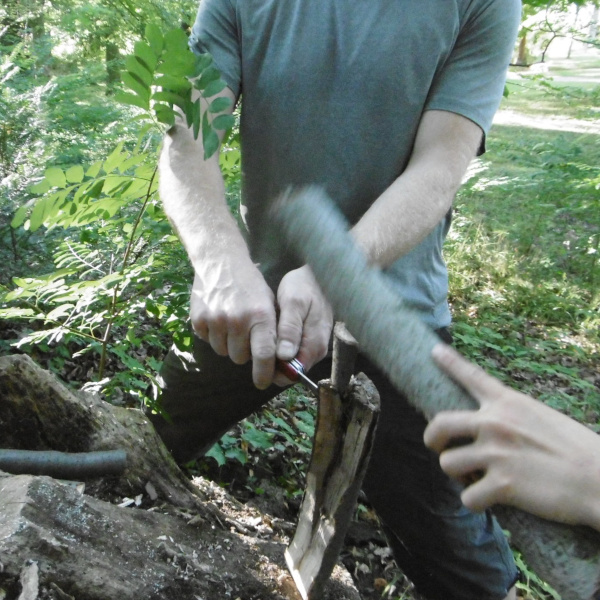 Naturwerken findet ausschließlich im Freien statt. Wir nehmen wahr, was da ist, wählen sorgsam Material aus, verwenden konsequent nur unsere Hände oder einfache Werkzeuge wie das Taschenmesser. Klebstoff oder Bindematerial fertigen wir ebenfalls aus Naturmaterial an. Geklebt wird mit Lehm oder Harz, gebunden mit Fasern. Hölzer werden geklemmt, gesteckt oder aufgespleißt. Auf diese Weise verlangsamen wir den Werkprozess bzw. führen ihn auf das Tempo zurück, das den Dingen selber innewohnt. Oft passiert es, dass aus dem Werken ein Spielen wird und umgekehrt aus dem Spielen ein Werken. Durch dieses einfache, gemeinsame Draußen-Sein entsteht ein schönes Wir-Gefühl! Außerdem: es werden keine Spuren hinterlassen, nichts zerstört und nach dem Werken wird alles wieder aufgeräumt. Auch die Wasserräder verbleiben nicht im Bach...