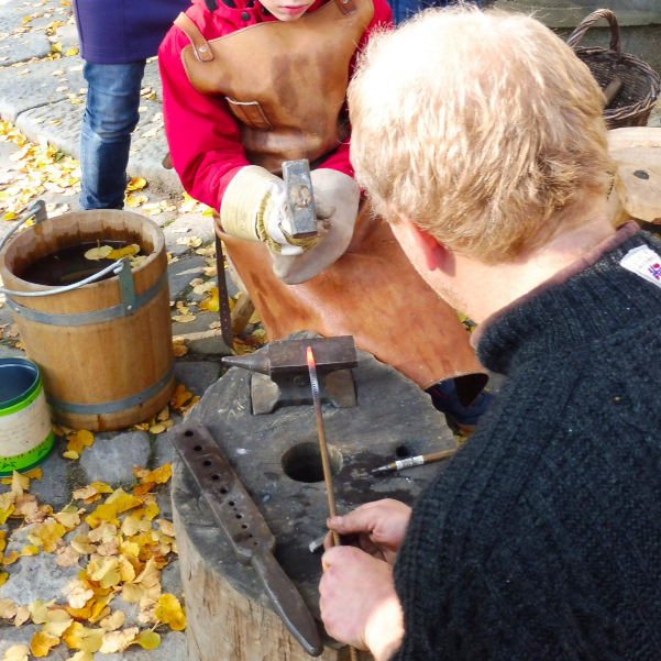 Die Schmiede ist klein, leicht und mobil, sie kommt in Dresden und Umland mit dem Fahrradanhänger überall hin. Das Angebot ist für Kinder, Erwachsene und Familien geeignet. Es gibt auch andere metallurgische Techniken wie das Bronzegiessen.