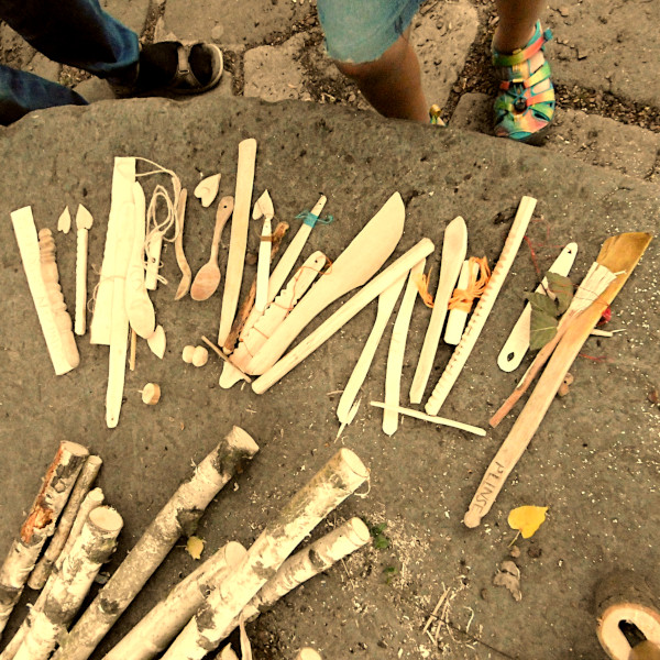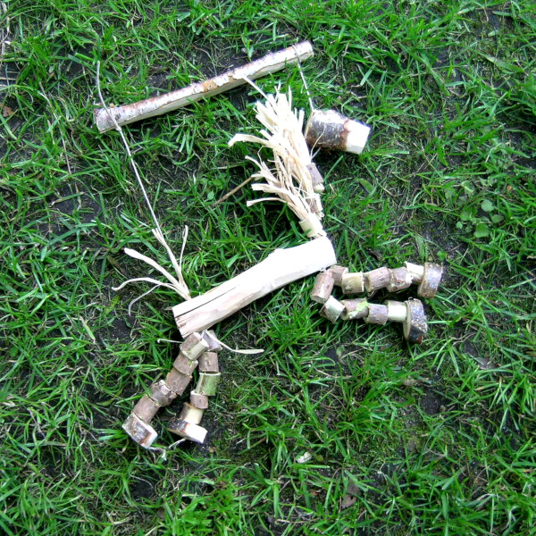 Am schönsten ist das Werken in freier Natur. Wir ziehen umher, suchen Materialien und gestalten wunderbare Spielobjekte daraus.