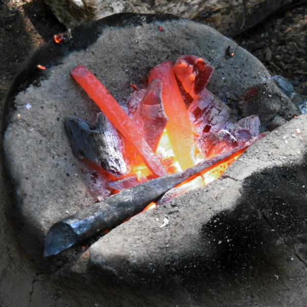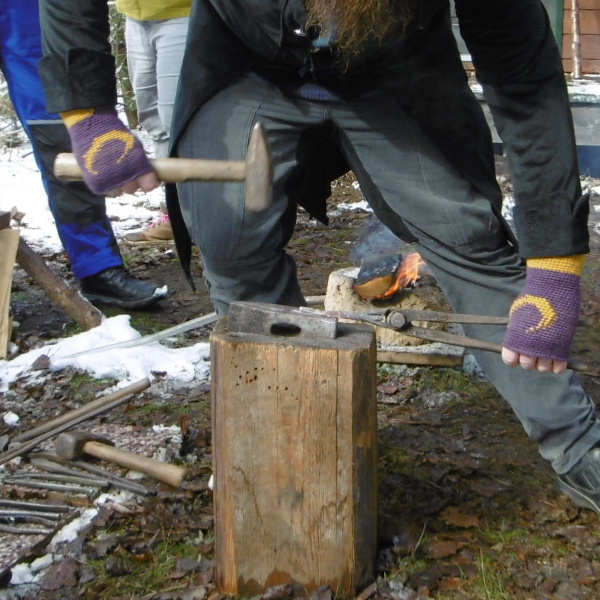 An der Schmiede benötigen wir verschiedene ExpertInnen-Gruppen. Da das Konzept handlungsorientiert ist, werden kooperative Strategien entwickelt, um das gemeinsame Ziel zu erreichen: kleine Schneidemesser und eine Bratpfanne schmieden und eine Mahlzeit zubereiten. Es muss Holz beschafft, Feuer gemacht und gehütet, die Schmiede eingerichtet, Griffe und Kochbesteck geschnitzt und eine Kochstelle eingerichtet werden.