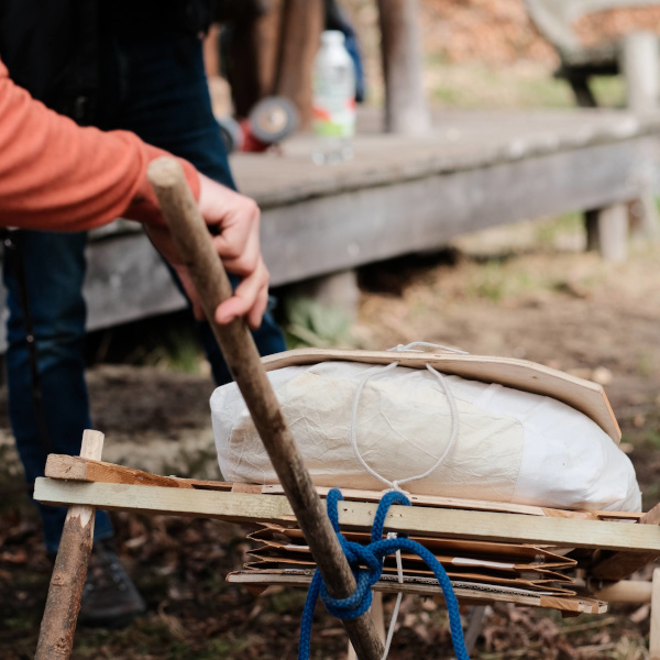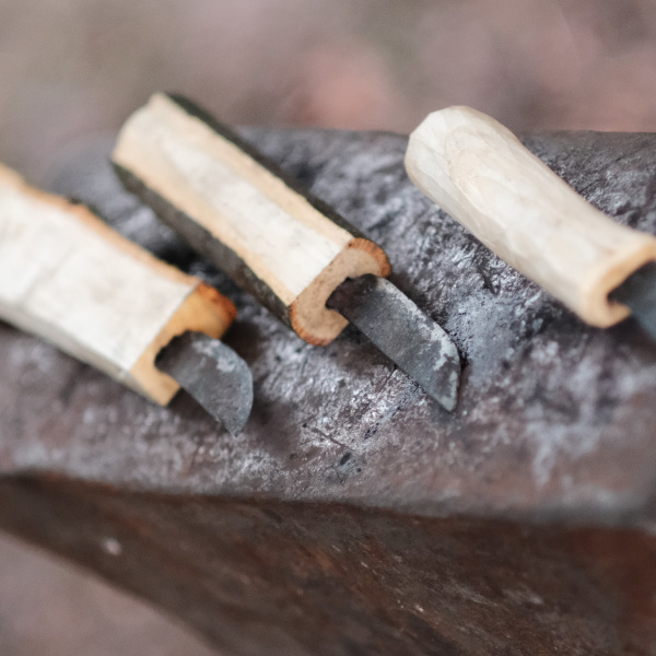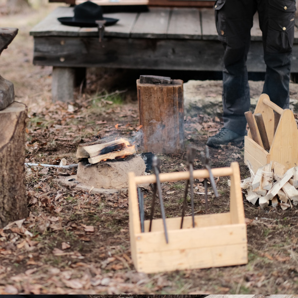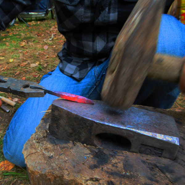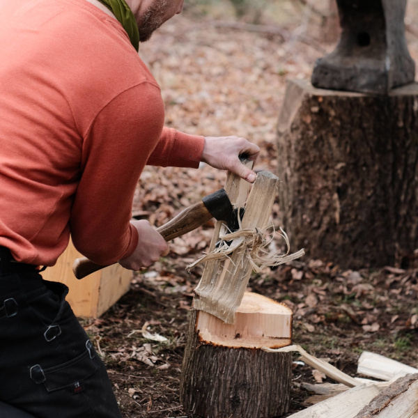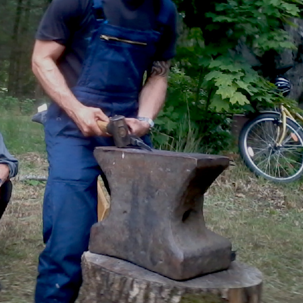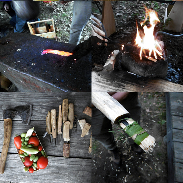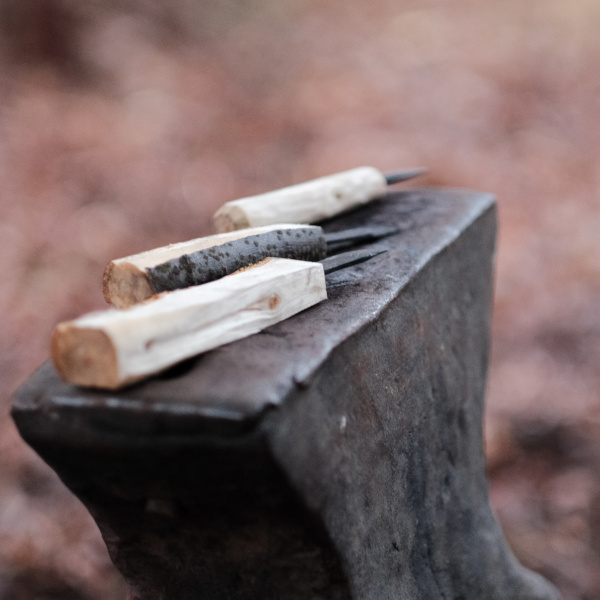 Am wichtigsten sind zuerst die Holzbeschaffung sowie das Feuerbohren. Später werden die Schmiede- und die Schnitzgruppe eingeteilt. Während letztere an den Griffen arbeitet und Kochgeräte anfertigt, werden in der ersteren bereits die Klingen für die Messer und die kleine Bratpfanne geschmiedet.
